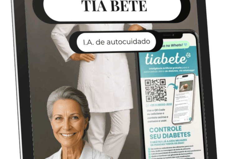 Converse com a Tia Bete no WhatsApp e tenha uma assistente gratuita para o seu dia a dia com diabetes. Ela ajuda você a contar carboidratos, ajustar doses de insulina, controlar o peso, organizar compras de medicamentos e insumos, além de dar dicas práticas de bem-estar e autocuidado.